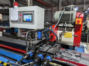 Use machines to cut metal tubes for pet ramp frames to exact lengths.