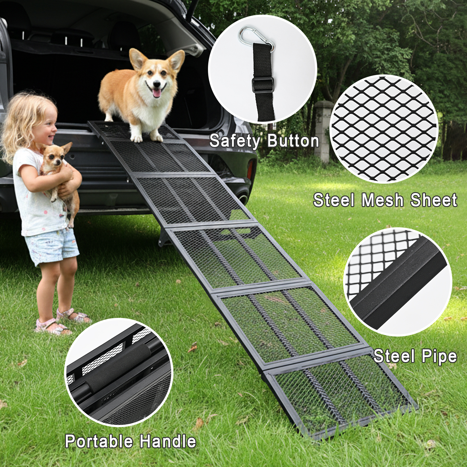 Anti-Slip Surface: The diamond mesh texture offers a reliable paw grip on the dog ramp, keeping your furry companion safe on every journey, whether on rainy or dry days alike.