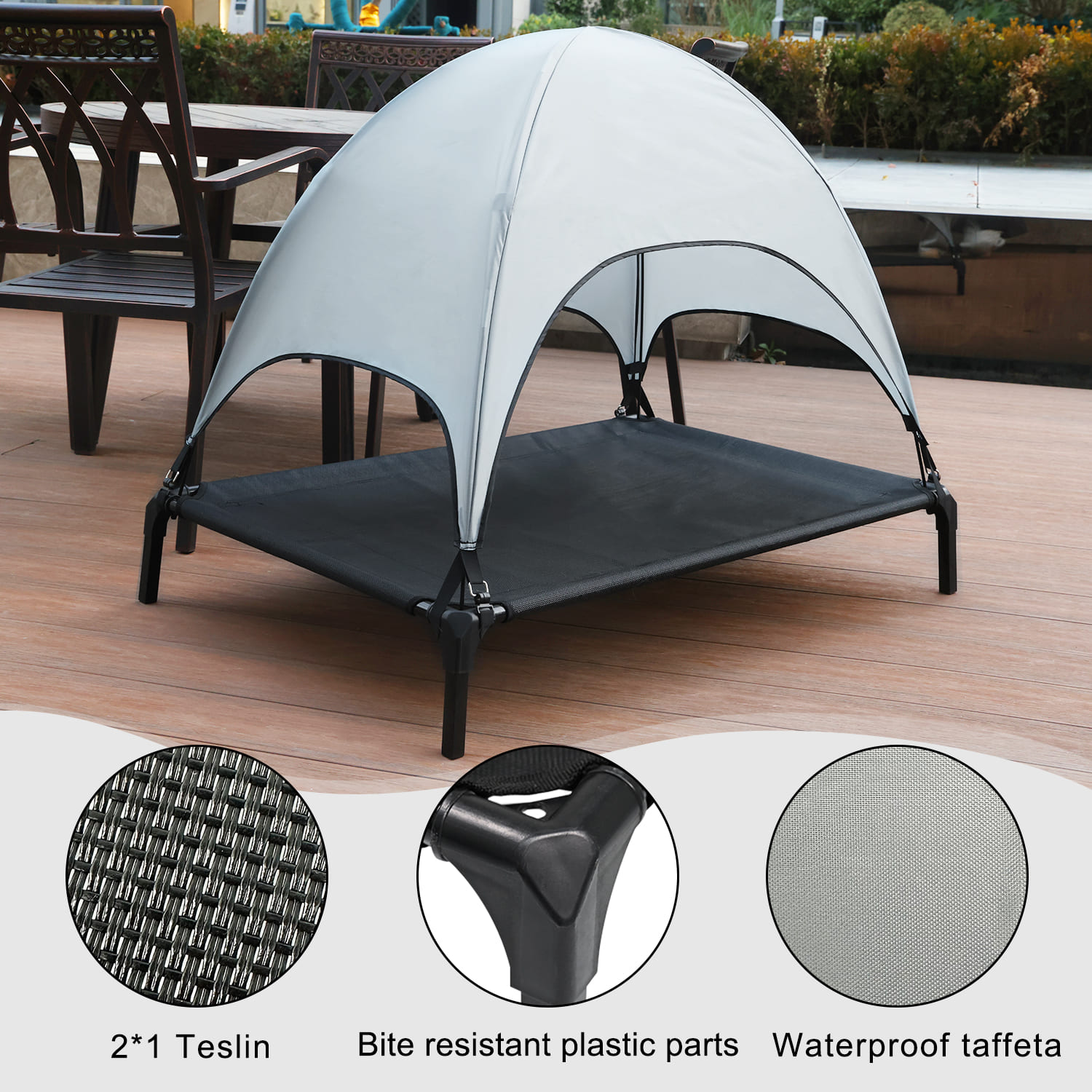 Multi-environmental application: It can be placed on the balcony of your home or used when you go out for a trip, and the design of the tent can effectively help the dog to protect itself from the sun and stay cooler.