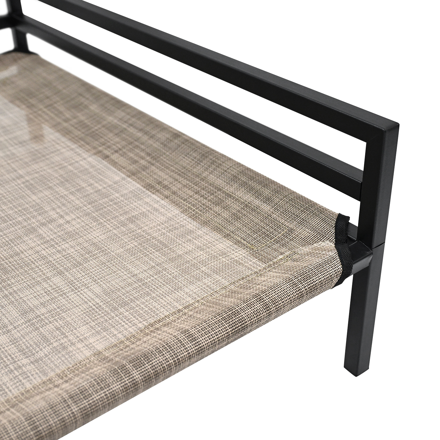 Durable Teslin Mesh with Reinforced Back Straps: Made with high-density Teslin mesh, the sleeping surface is breathable, waterproof, and built to last. Two supportive straps at the back reinforce the mesh to prevent sagging and ensure stable support for dogs of all sizes.