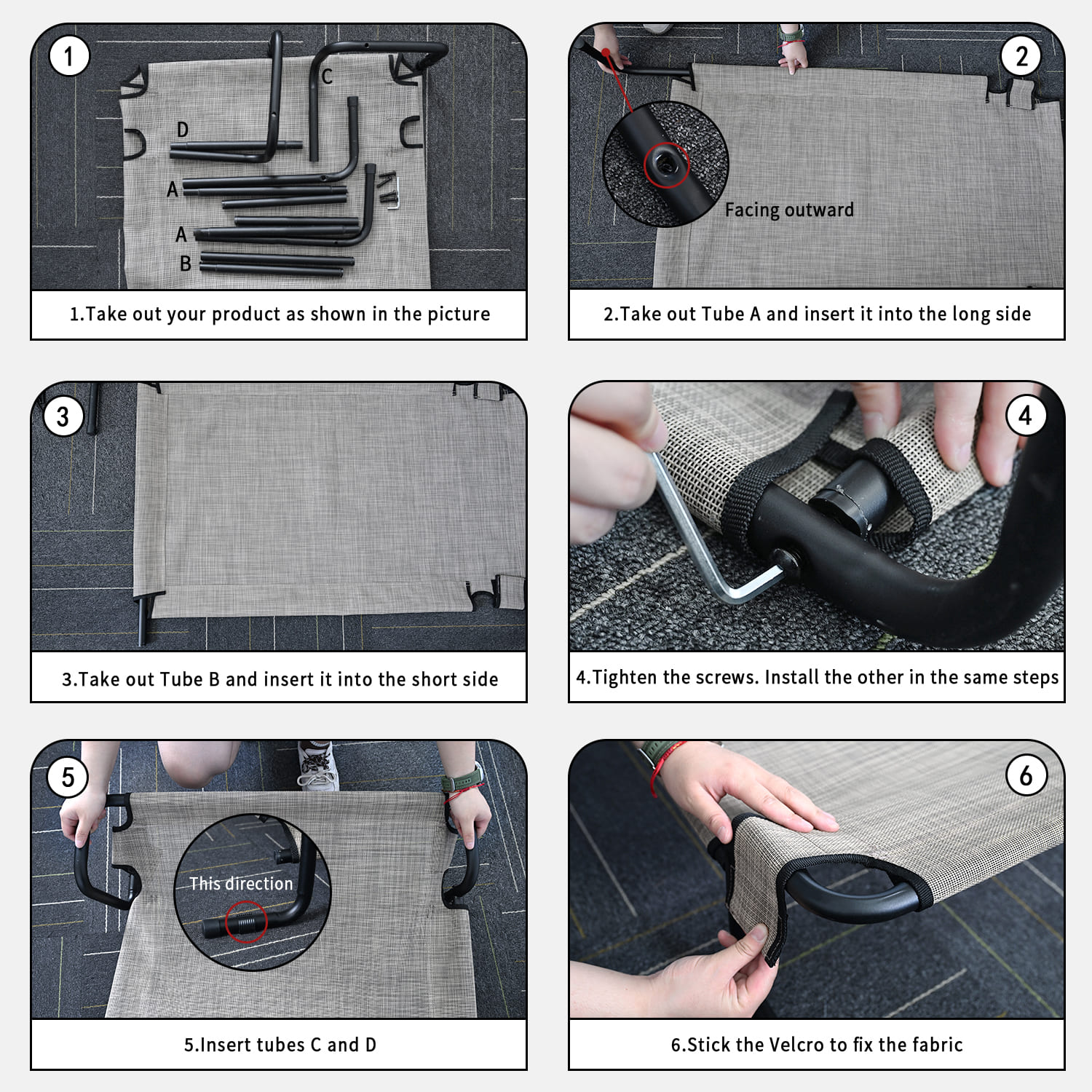 Stable Structure: Powder-coated steel tubes, sturdy cross-support bars, and anti-slip foot caps work together to keep the bed firmly in place on any surface.