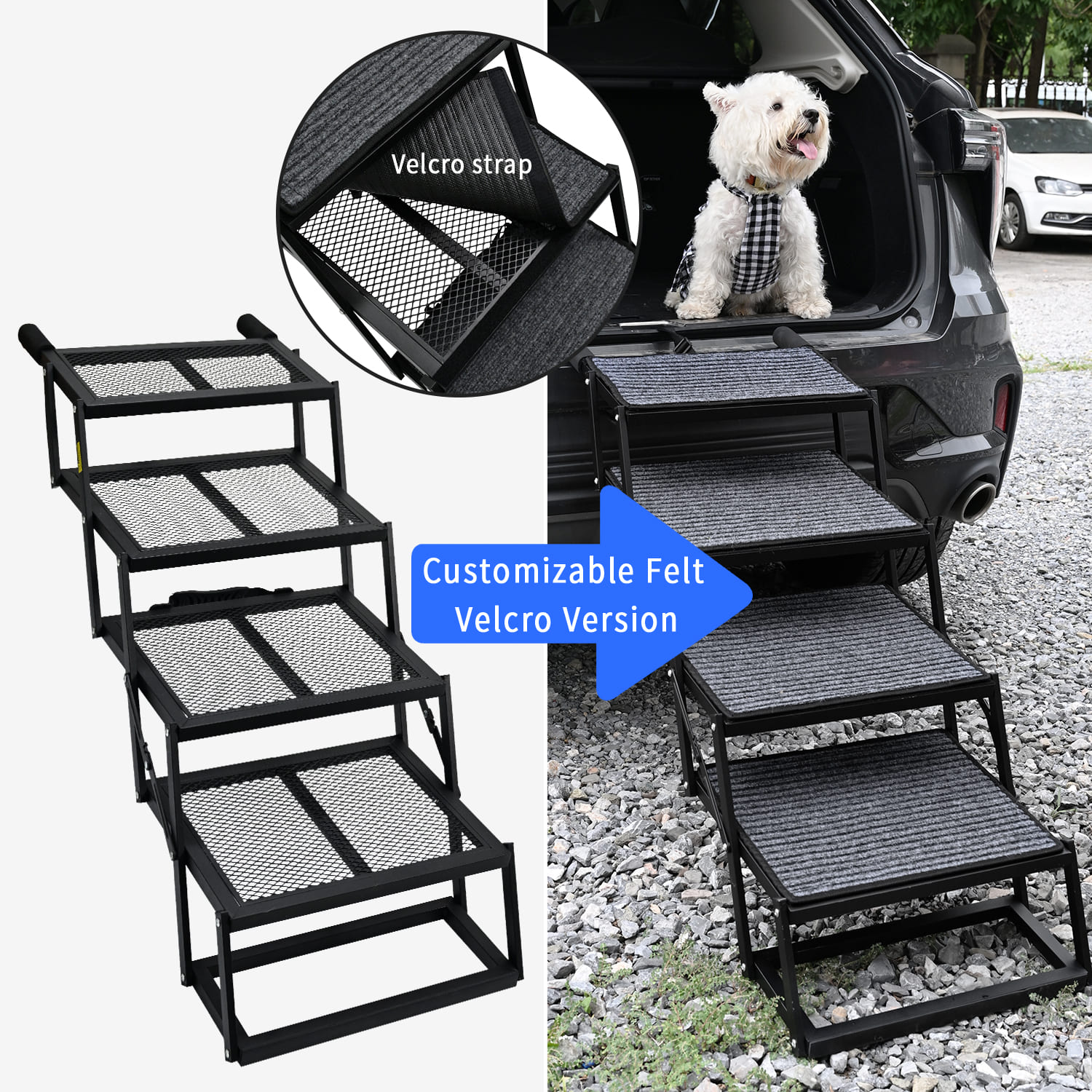 Removable Felt Surface for Versatile Use: Equipped with a detachable felt mat that offers extra grip and comfort for your pet. The ramp surface can be easily cleaned or used without the felt for outdoor or rugged environments.